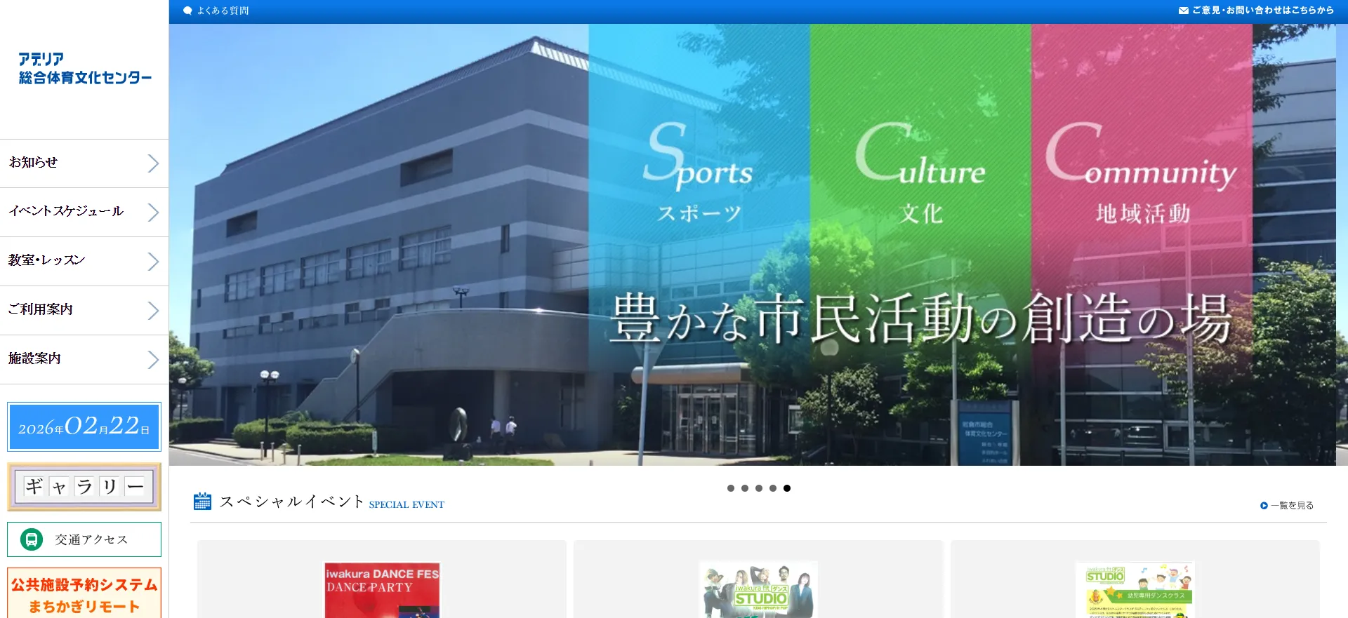 画像出典:https://www.nem-shiteikanri.jp/shisetsu/iwakura/class/index.html(岩倉市総合体育文化センター公式サイト)