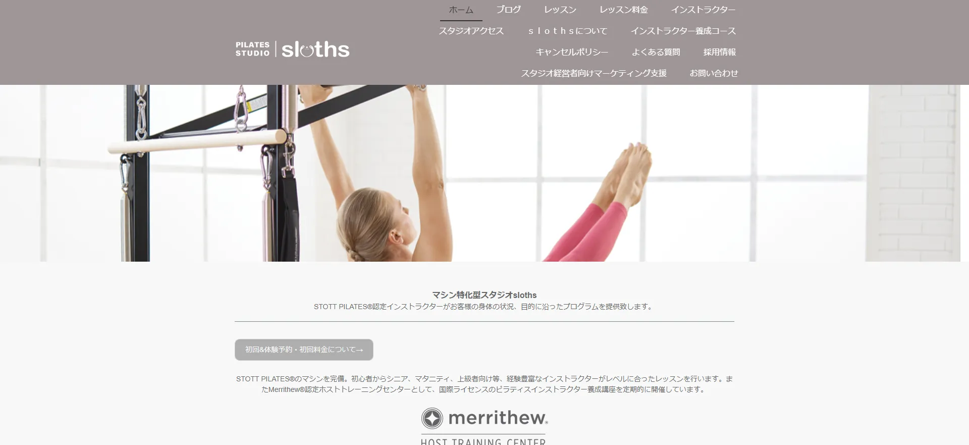 画像出典:https://www.pilates-sloths.com/(ピラティススタジオ スロウス公式サイト)