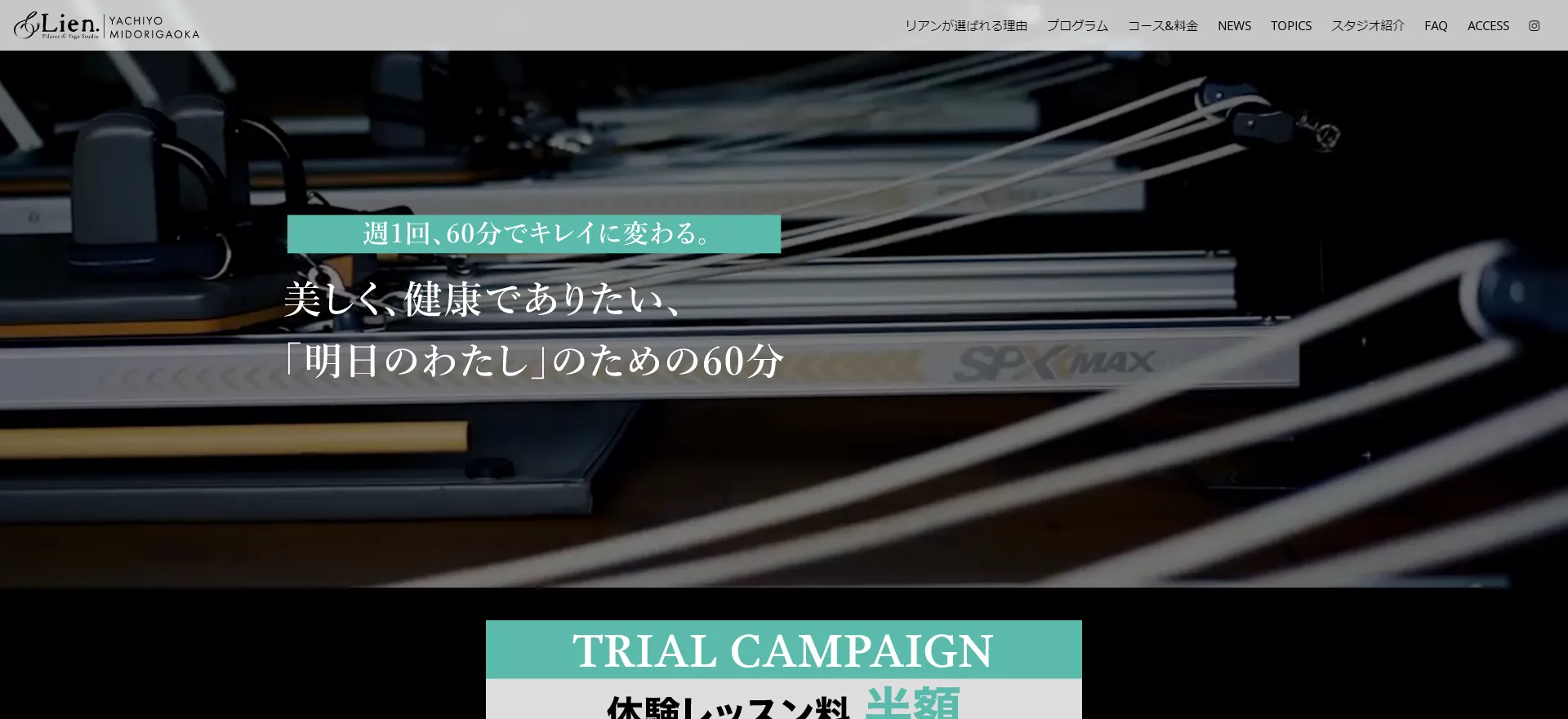 画像出典:https://yachiyomidorigaoka.lien-lien.jp/(ピラティス&ヨガスタジオ リアン八千代緑が丘店公式サイト)