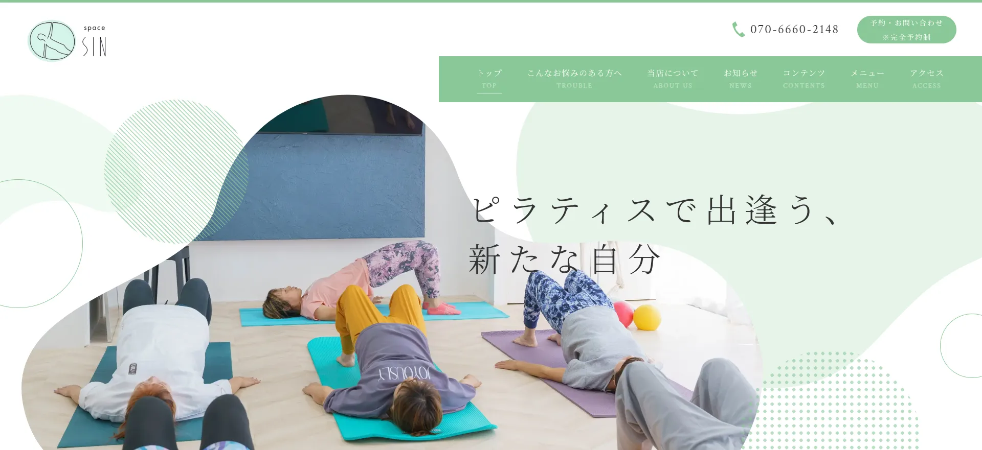 | space SIN(スペース シン) | 公式サイト | 月2回:9,800円〜 | – | マット・パーソナルピラティス | パーソナル |