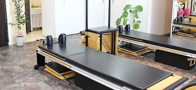 - リフォーマー、チェアなど豊富なマシンが揃っており、本格的なピラティスが学べる。