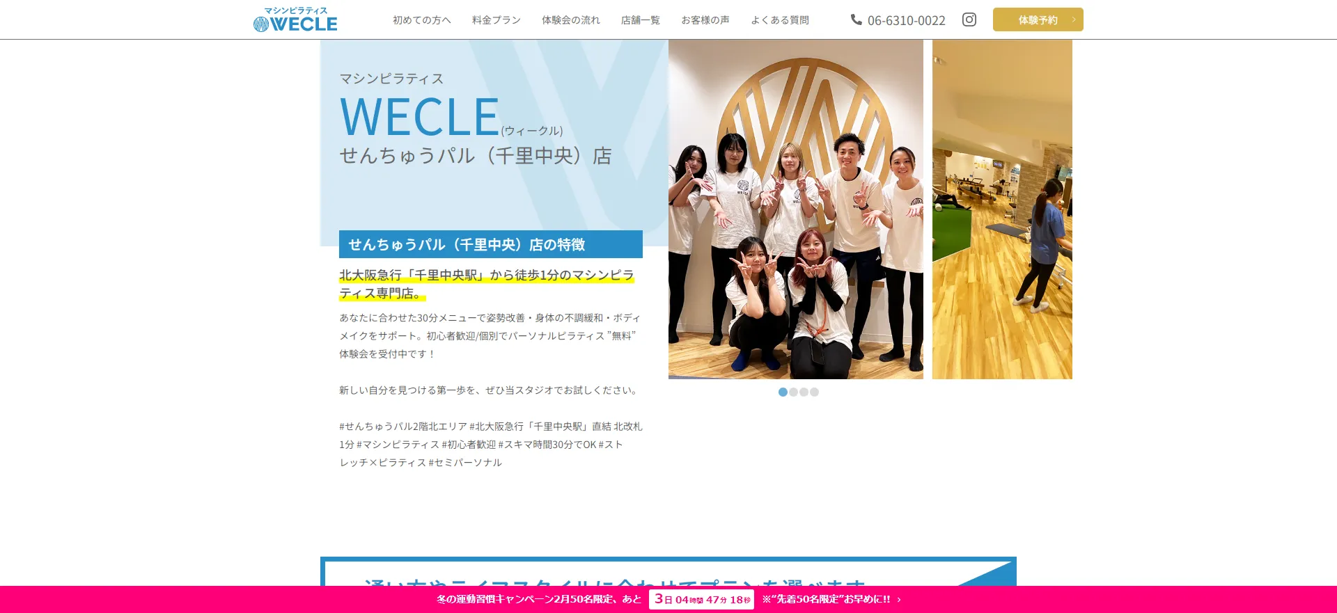| WECLE せんちゅうパル(千里中央)店 | 公式サイト | 月額8,800円〜 | 無料体験 | マシンピラティス | セミパーソナル |
