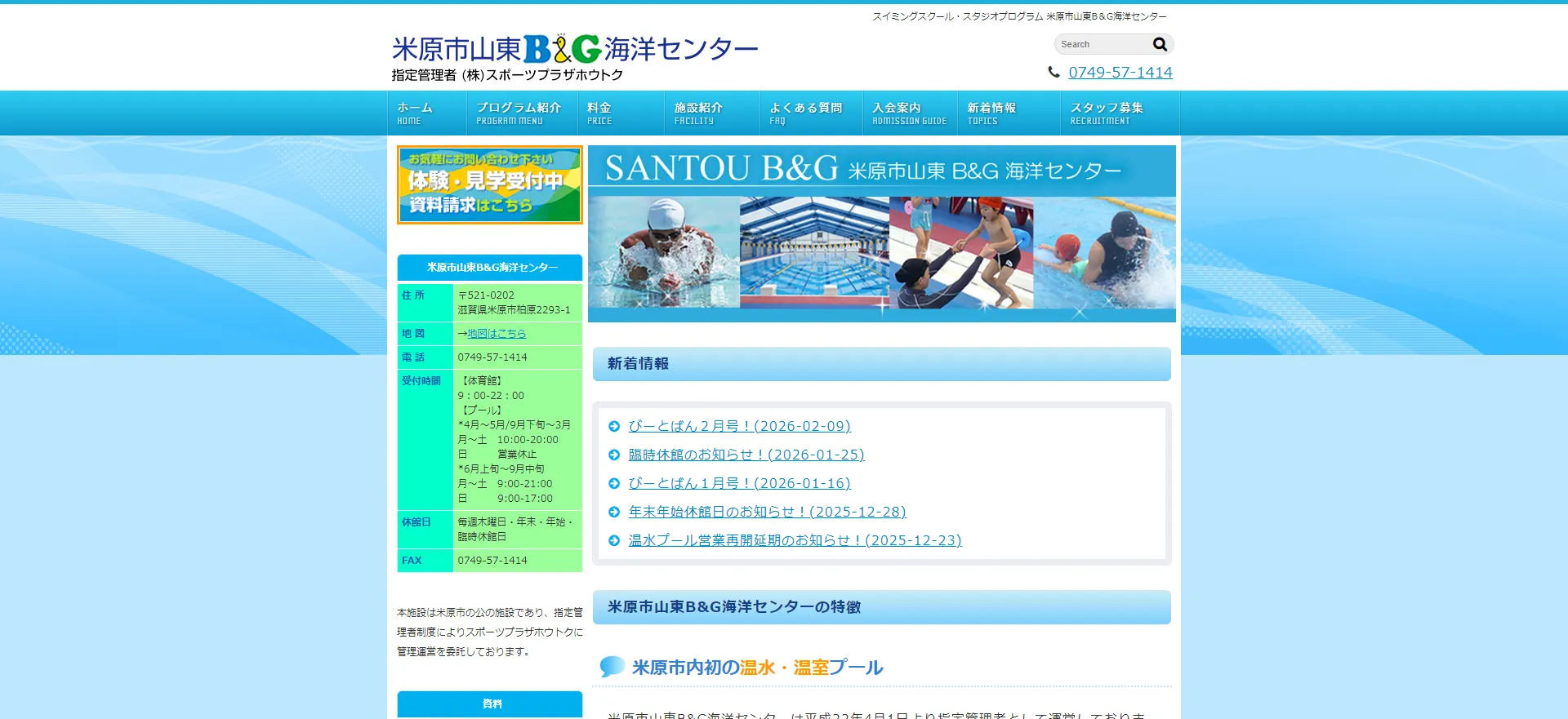 画像出典:https://www.sp-houtoku.com/santo/pgm/studio-adult/(米原市山東B&G海洋センター公式サイト)