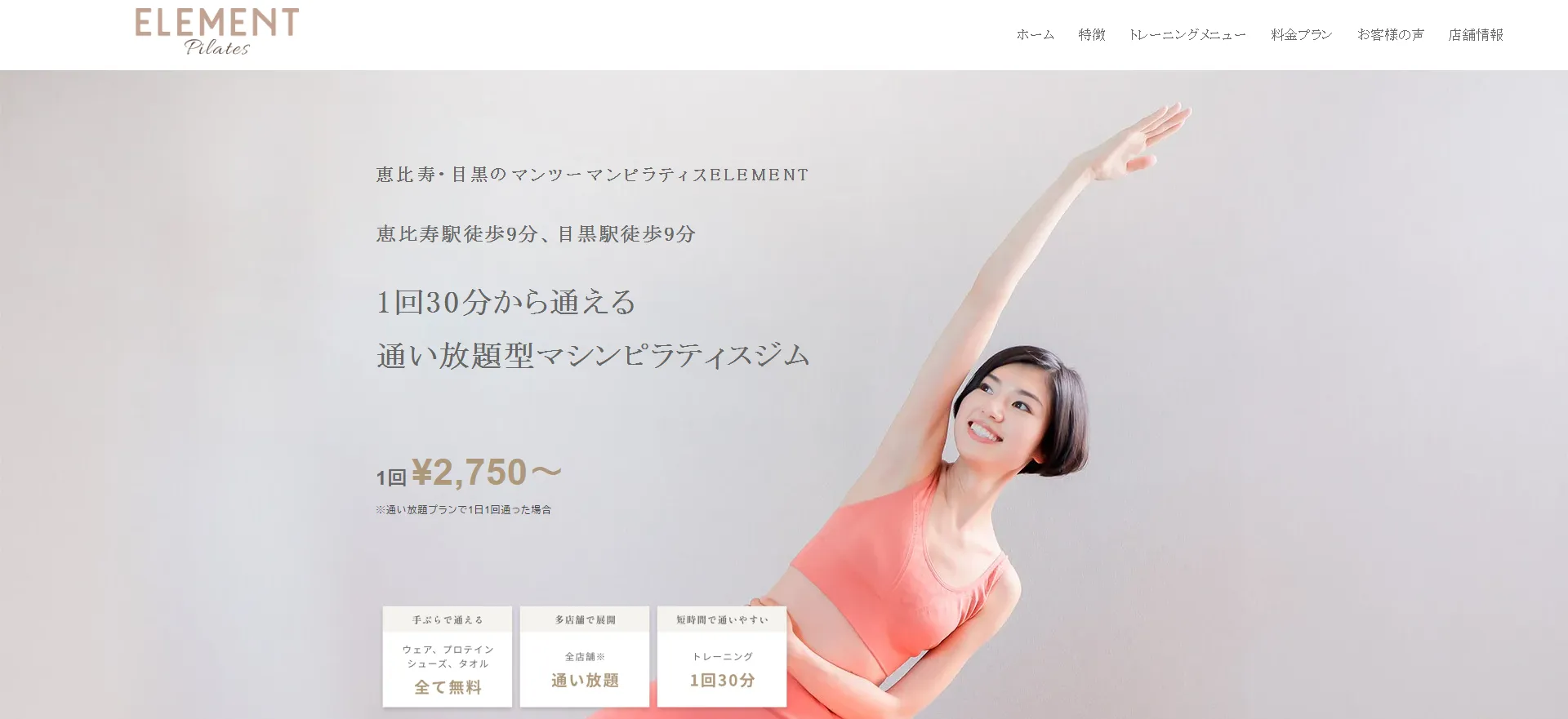 画像出典:https://element-gym.com/element-top/pilates/pilates-all/ebisu-meguro-pilates/(ELEMENT 恵比寿・目黒店公式サイト)