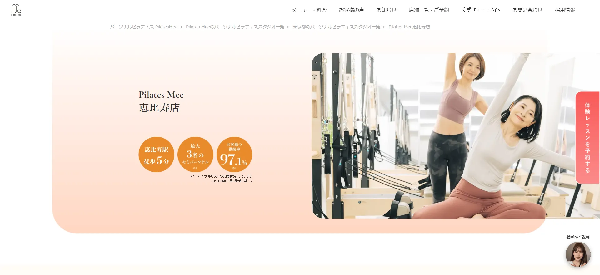 画像出典:https://pilates-mee.com/(Pilates Mee 恵比寿店公式サイト)