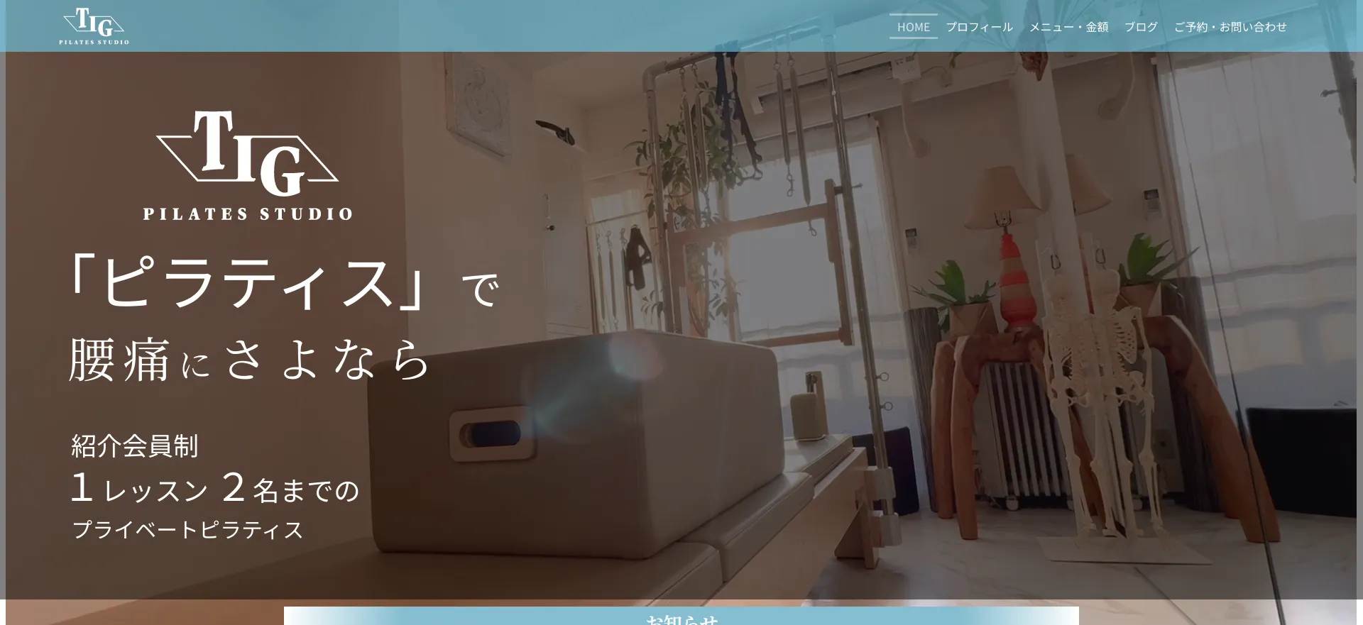 画像出典:https://tig-pilates.com/(TIG PILATES STUDIO公式サイト)