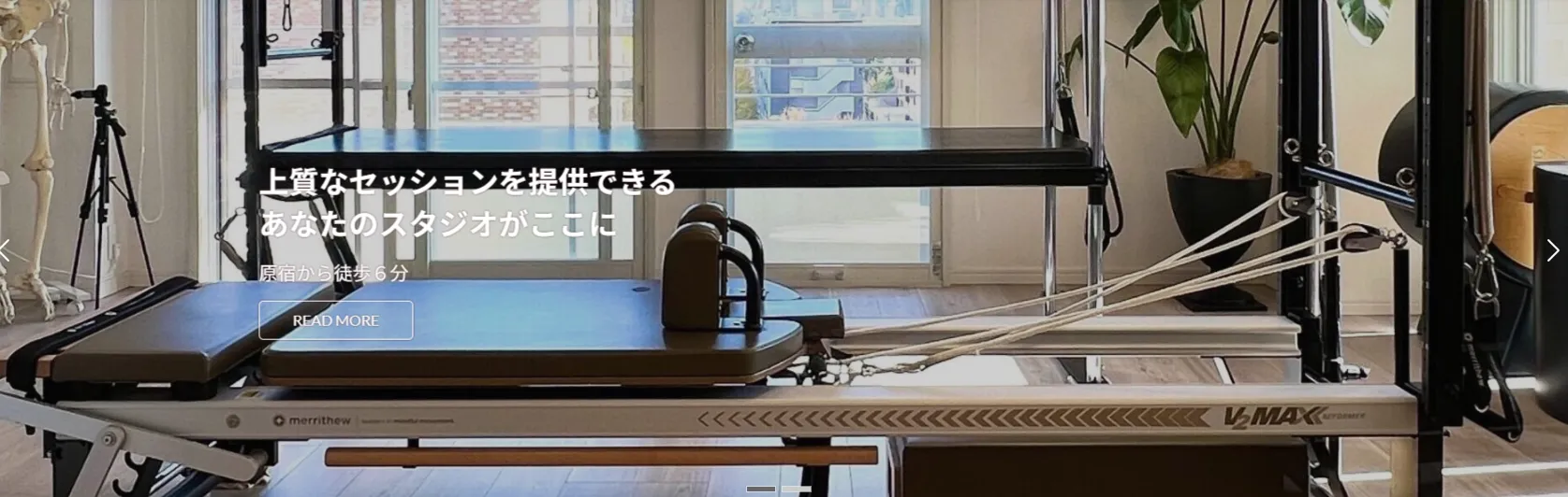 - Merrithew社製の豊富なマシンとプロップスが揃い、充実した設備環境。