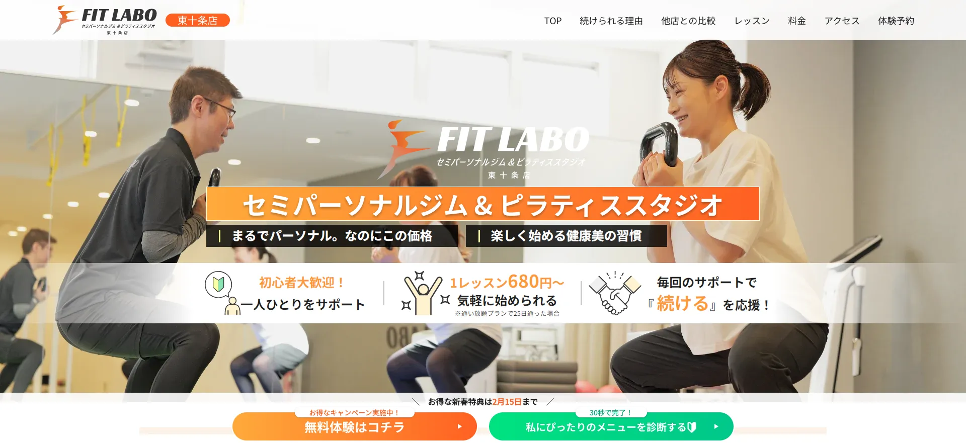 FIT LABO セミパーソナルジム & ピラティススタジオ 東十条店 公式サイト 月額13,200円〜 3,300円 マシン・マット両方 セミパーソナル ・セミパーソナル形式で、パーソナルの質の高さとグループの通いやすさを両立