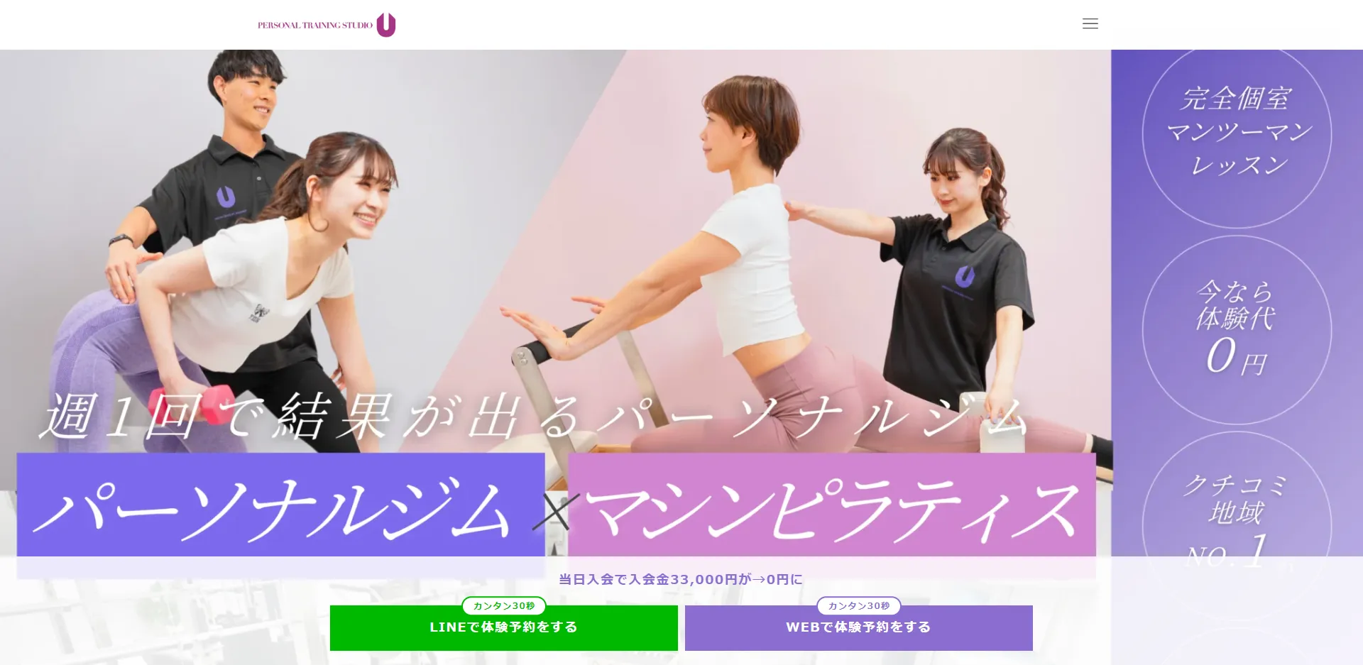 | PERSONAL TRAINING STUDIO U 都立家政・鷺ノ宮店 | 公式サイト | 月額22,000円〜 | 5,500円 | マシンピラティス | パーソナル |