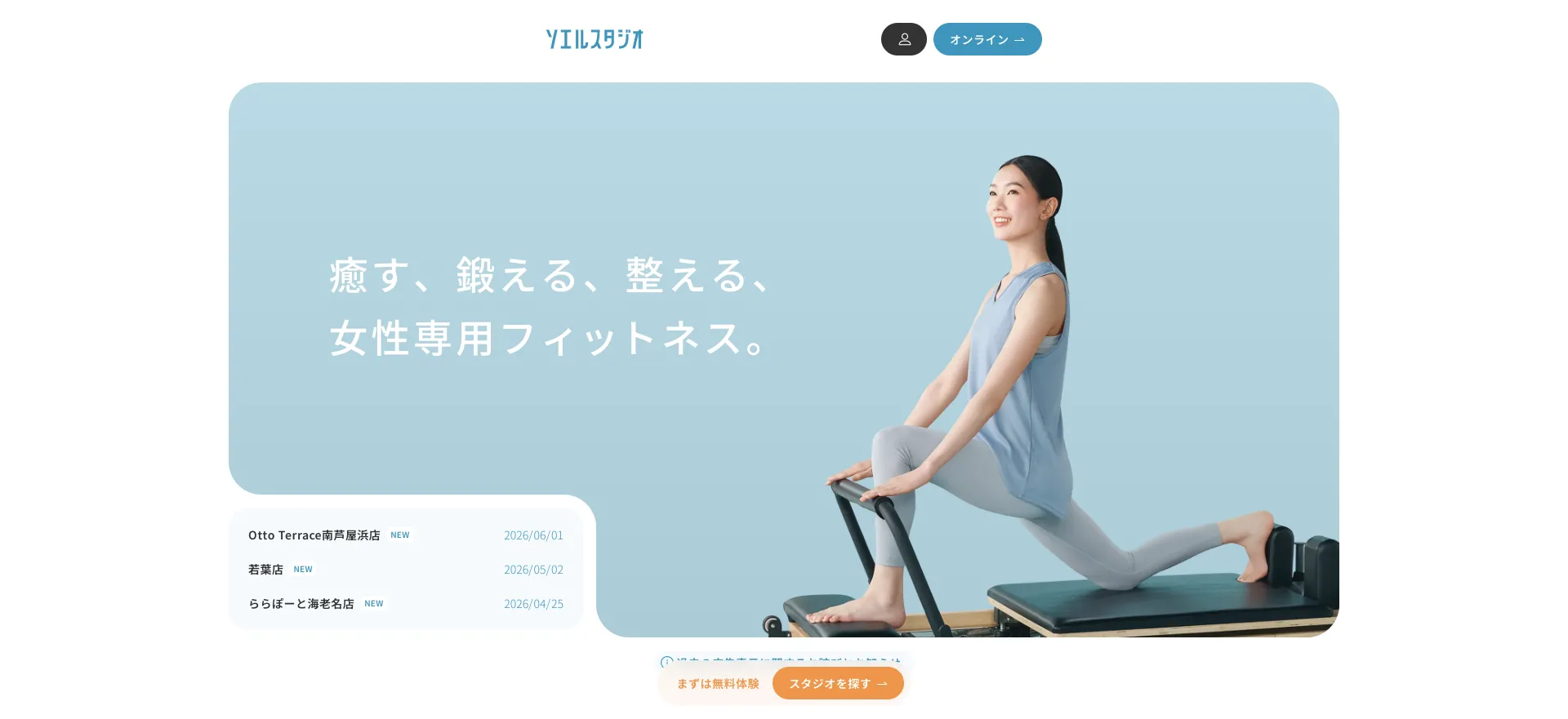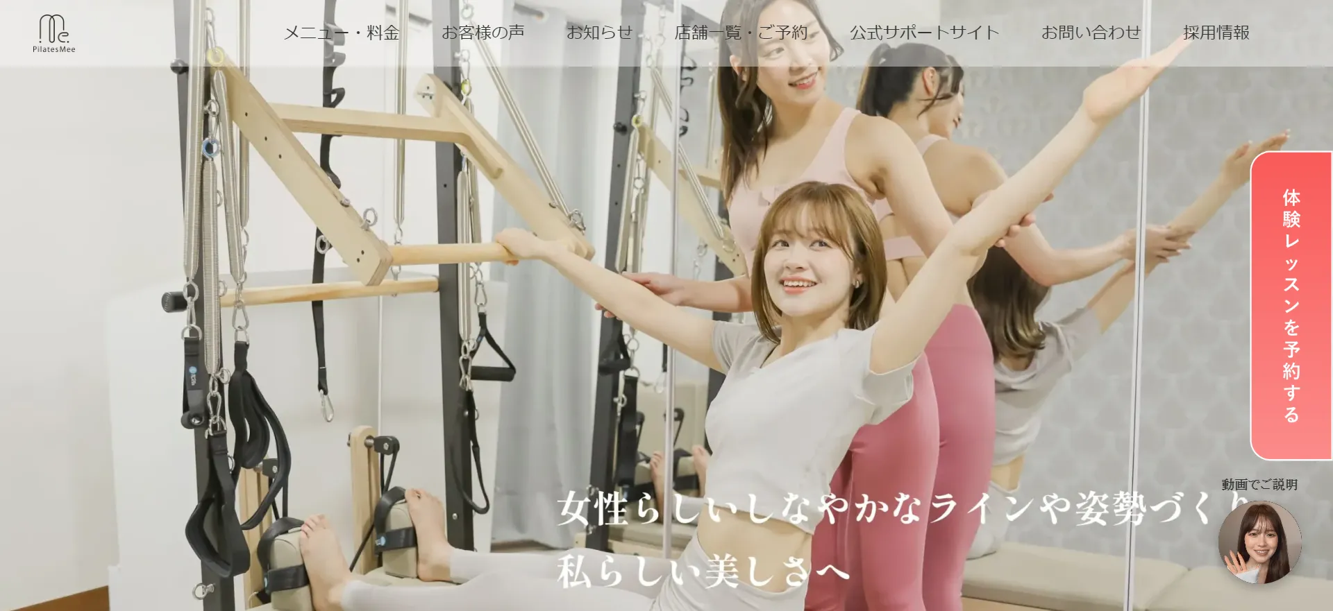 パーソナルマシンピラティスSAKURAは、完全個別レッスンで一人ひとりの体に合わせたサポートを行う女性専用のピラティススタジオです。