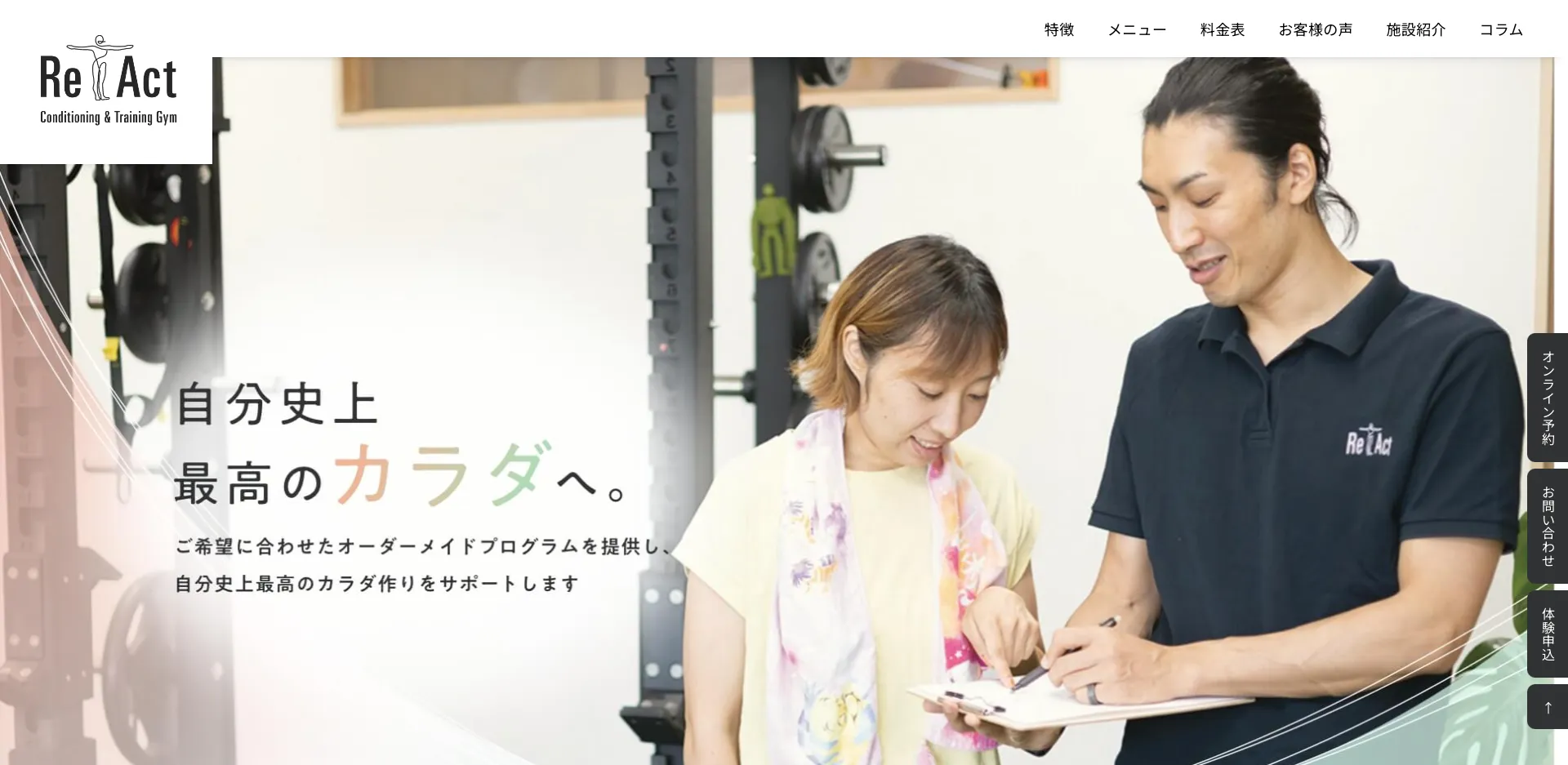 | ReAct Conditioning & Training Gym | 公式サイト | 個別料金設定 | カウンセリングあり | ピラティス含むトレーニング | パーソナル |